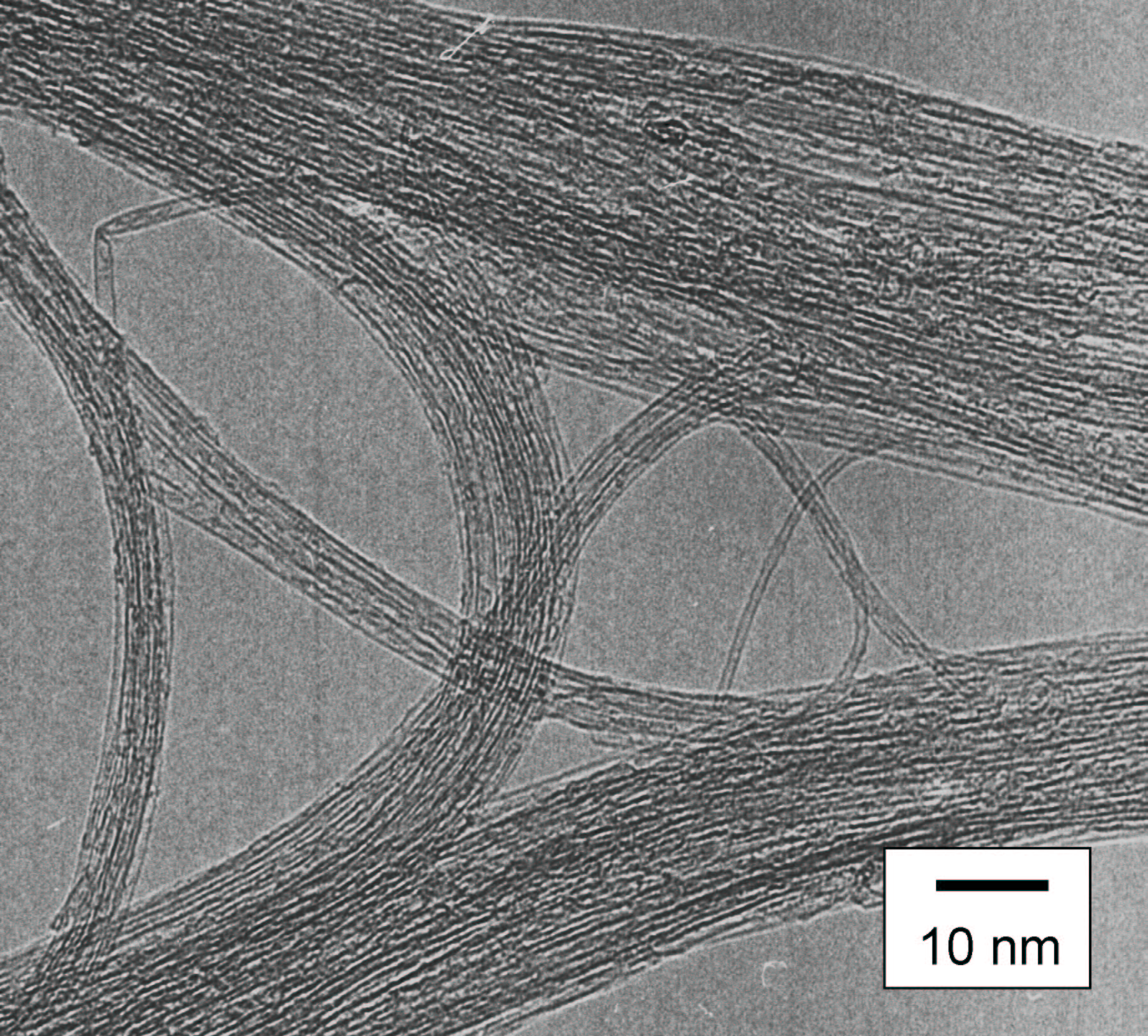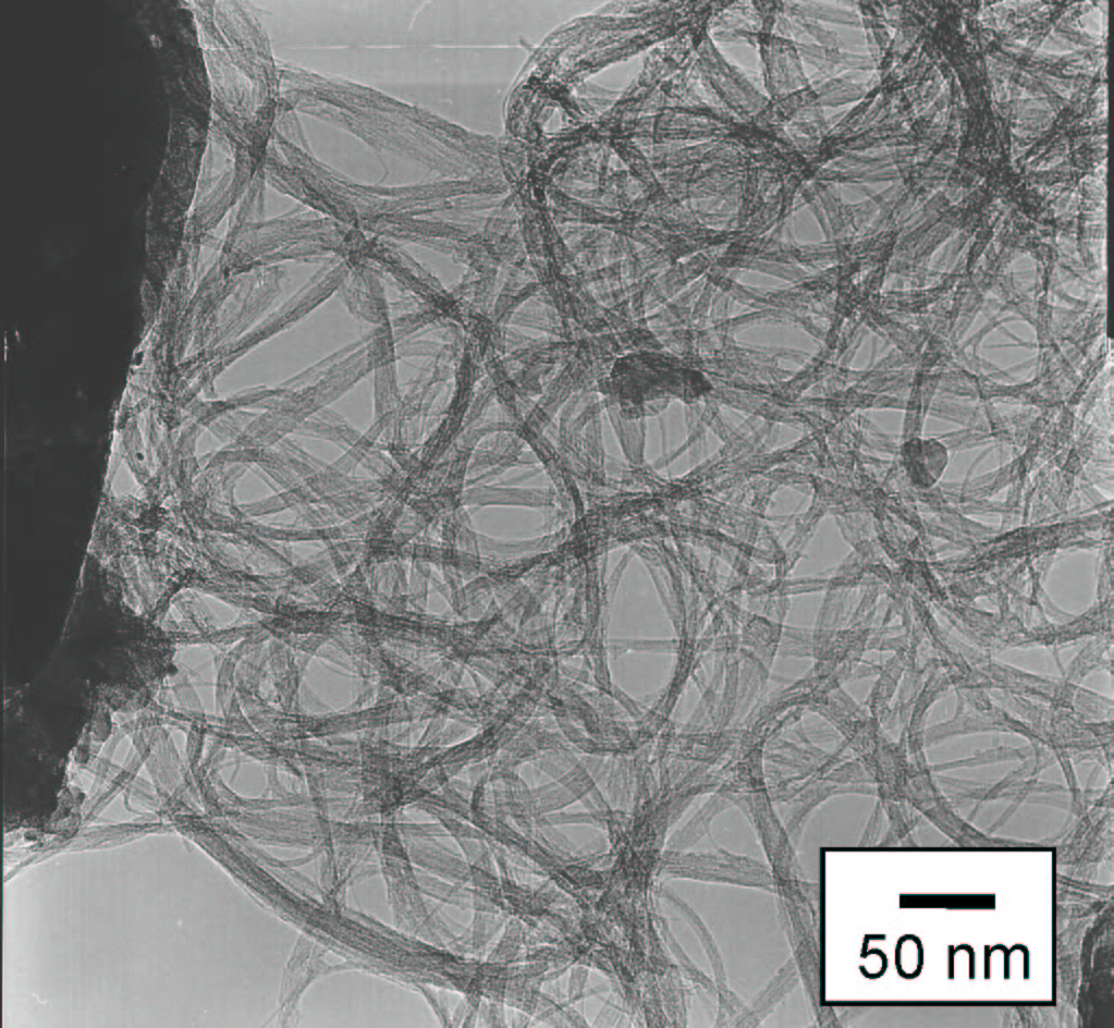 透過型電子顕微鏡像(TEM) [Click for enlargement] 金属微粒子,アモルファス, 多層ナノチューブは存在しない |