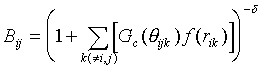 B*は結合i-jと隣り合う結合i-kとの角度ijkの関数で,結合状態を表すように引力項の係数となっている.