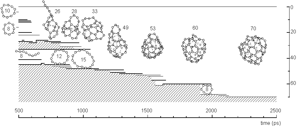 process starting from 500 isolated carbon atoms was simulated