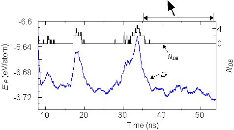 ns程度で歪みの蓄積により再びダングリングボンドを発生し,ポテンシャルエネルギーの高い不安定状態に陥るが,19