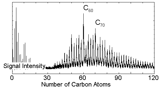 & Huffmanの大量合成のFAXがSmalley教授のところに届き,ワインで乾杯すると同時に一時はFT-ICR以外の実験装置はすべて休止させて,研究室総出でアーク放電法の実験装置の製作に取りかかった.私自身はFT-ICRの方をもう少し極めたいと思っていたのであるが,実際にはその後蒸発させたサンプルは圧倒的にフラーレン関連のものが多かった.