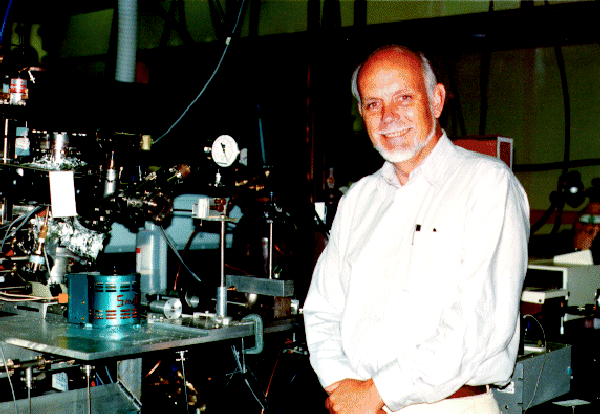 Prof. Smalley with the cluster mini-source for FT-ICR apparatus.