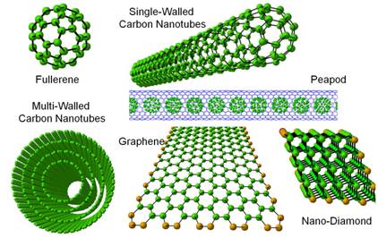 2−1.フラーレン,2−2.グラファイトシート,2−3.カーボンナノチューブ,2−4.グラファイト,2−5.ダイアモンド